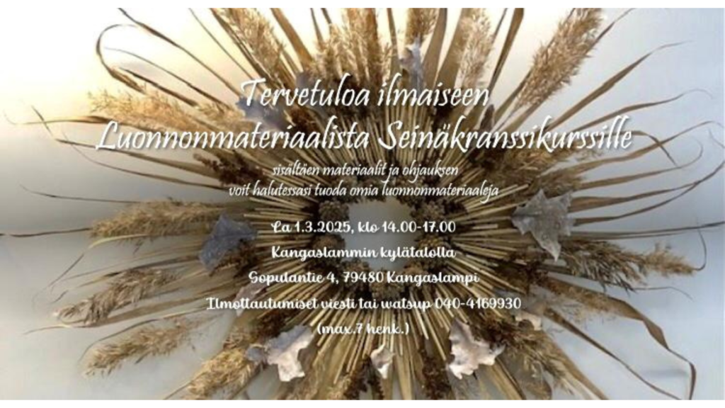 Luonnonmateriaalista seinäkranssi -kurssi 1.3.2025 klo 14-17