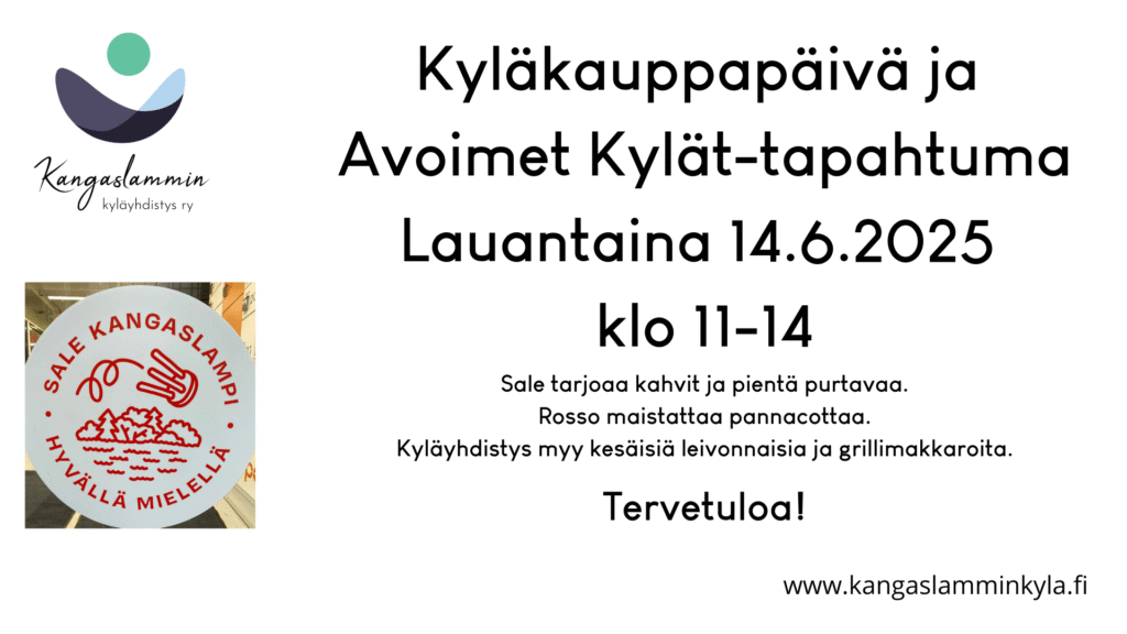 Kyläkauppäivä ja Avoimet Kylät lauantaina 14.6.2025 Salen terassilla.