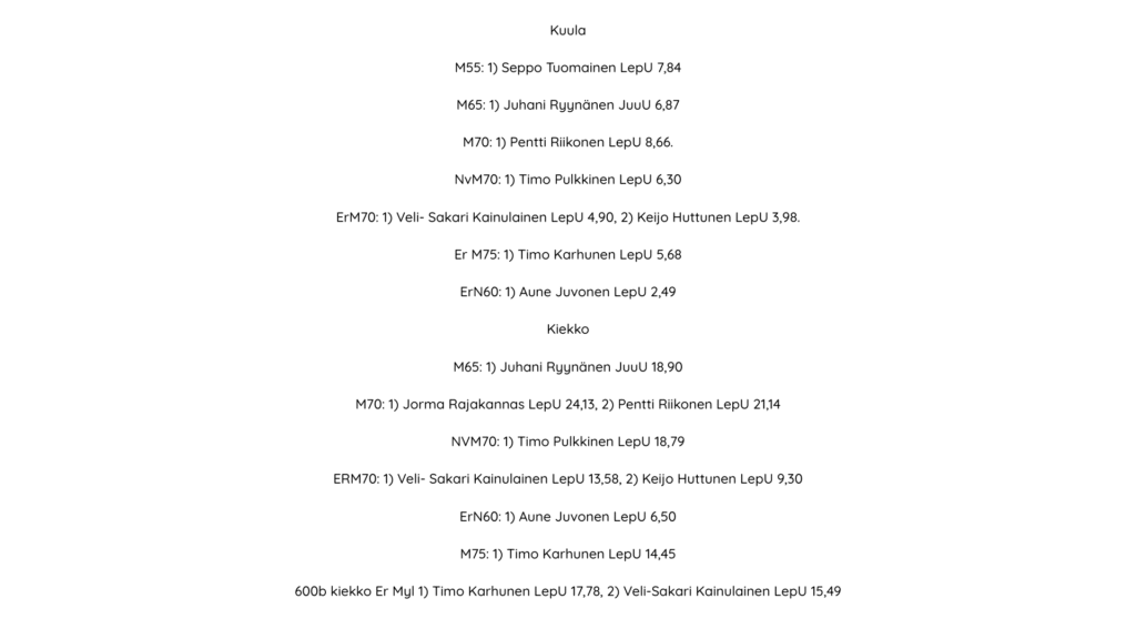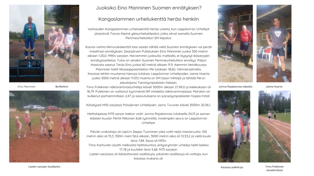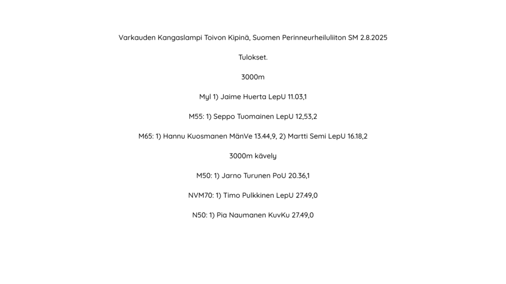 Perinneyleisurheilun SM-kilpailut 2025 2.8.2025 Kangaslammin urheilukentällä
